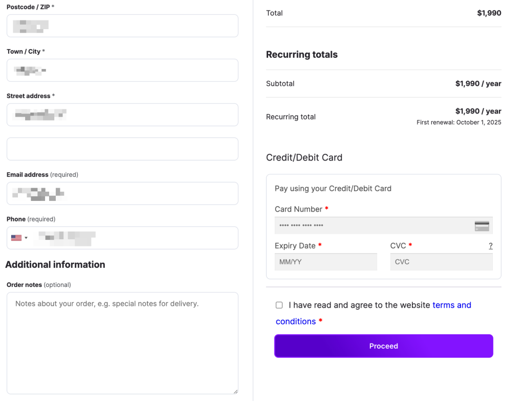 - After selecting your plan, proceed to checkout by filling in your payment details.